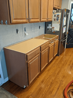A little research led us to the cabinet maker for our cabinets so we ordered a new one to replace the desk that was in the kitchen. This has given us one large even counter space!