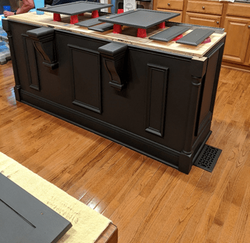 Ta da! We found an amazing tool to support the farmhouse sink. It worked so well and the customer support was beyond amazing! I highly recommend Pete’s Sink Mount for your farmhouse sink install!
