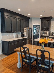 Another change from the master plan was adding an extension with crown molding to our cabinets. Funny story and another “have you ever thought moment” was my husband asking me if I liked the space above the cabinets- “Nope, not at all” was my reply! It always got SO dusty. (A little tip for you: if you do have space above your cabinets, line them with wax paper. When you want to remove the grime and dust from above your cabinets, all you have to do is toss the wax paper and place a new piece- easy peasy!) This turned into quite a large project in the middle of quite a large project but we are so happy that we went this route.