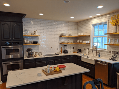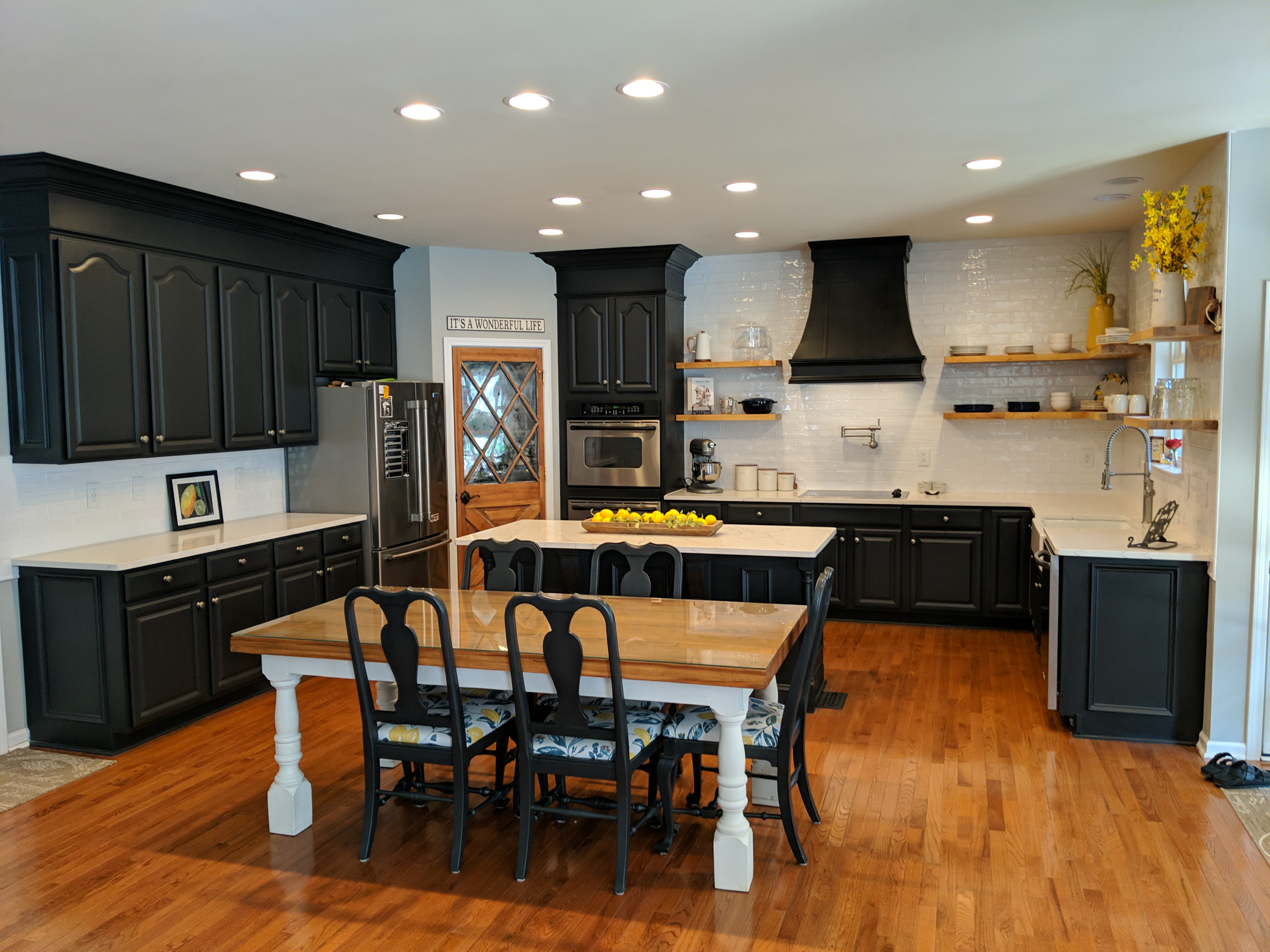 Initially, when we first started talking about renovating our kitchen, I thought an easy way to update and erase the orange vibe I was getting from this well-used area of our home was to simply paint the kitchen cabinets! Yay! Great idea! Bursting my bubble, my husband pointed out that the counter tops would need to be replaced as well. Then, it made sense to change the backsplash and if we were changing the backsplash, what if we removed the upper cabinets as well and did open shelving? YES, we thought….what a wonderful design we had come up with! And then the estimates started coming in from the contractors. WOW!