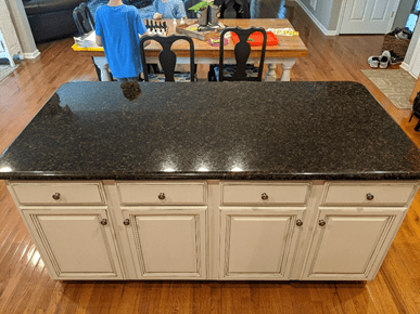 This very large piece of granite was super heavy. My husband, me, and two other guys removed this big hunk of rock without creating a large hole in the floor- Whew! We were so relieved and I felt like Wonder Woman!