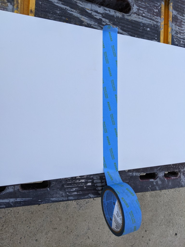 To my delight, we found melamine shelving that did not need to be painted- Yay! To me, that meant no sanding, painting, poly top coats or later repainting because of the inevitable scuffing. To the hubs, that meant trying to figure out what to use and how to cut it so it would not split or chip. Painter’s tape to the rescue! He’s a genius!