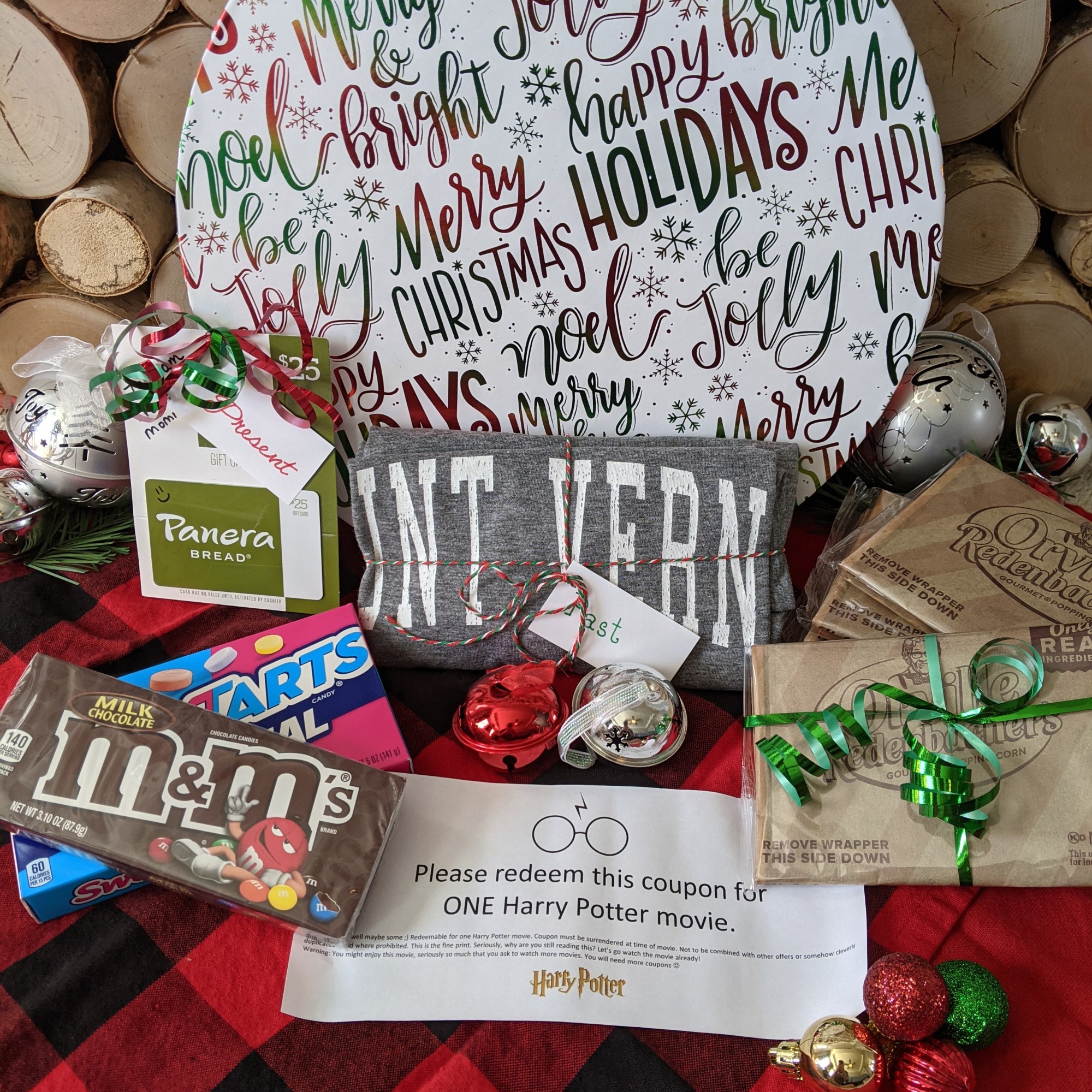 My middle son is my snuggler, he always has been so his “past” gift is a shirt! A shirt? Yes, the only way I could get him to sleep as a baby was to give him my shirt. That shirt is now quite tattered and falling to pieces, so I searched and found him a new one! His “present” gift is a Panera gift card because we love going to get cookies together. For a “future” gift we will snuggle up and watch a Harry Potter movie while enjoying some candy and popcorn!