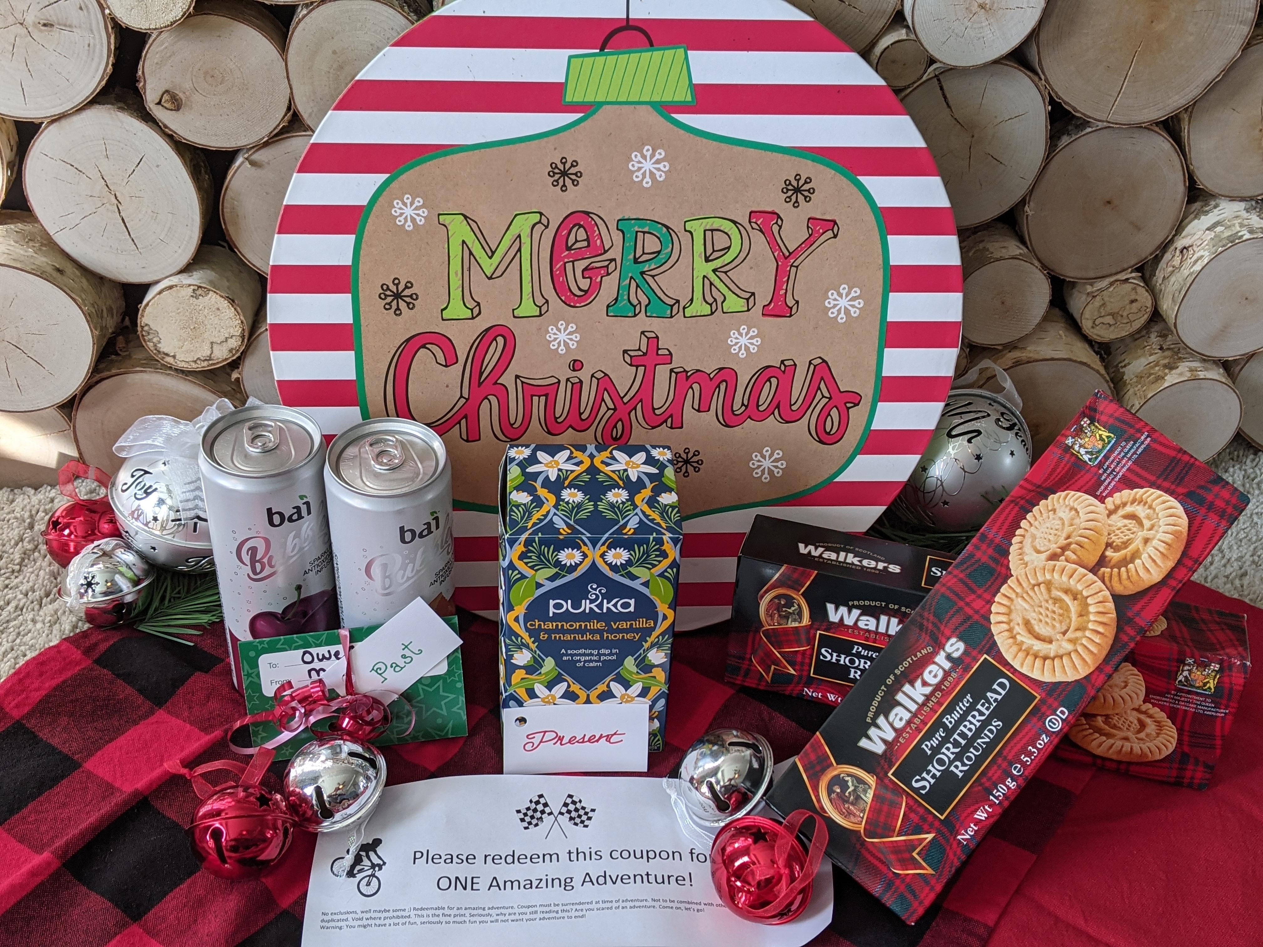My oldest, he’s 13, so yeah I’m savoring every moment. He became a teenager this year in so many ways and I love that he still thinks it’s cool to hang out with his mom. His gift to represent the past is a Harris Teeter gift card. Before this crazy year, our Saturday routine was he and I going to the grocery store together. He mentioned the other day how much he misses it! I think he will really enjoy being able to buy gum, drinks and fresh veggies…haha probaly not but a mom can hope! His “present gift is tea and cookies. We have a Tuesday tradition of enjoying tea and shortbread cookies while we work on his writing assignments. Finally, his future gift is a coupon for an adventure- mountain biking, air soft, or racing at K-1 Speed. The “fine print” really cracks me up!