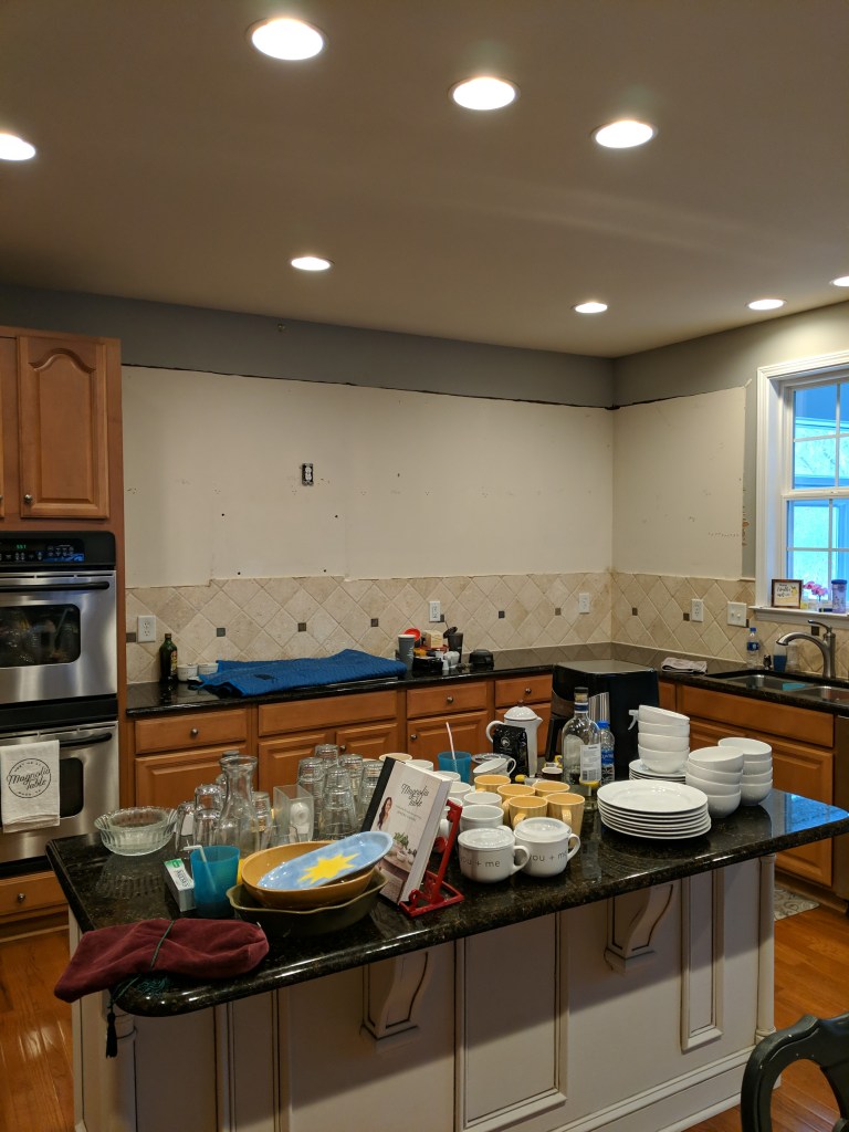 Buh Bye Upper cabinets! If I heard it once, I heard a million times, “Are you sure you want to remove your cabinets?!” and “What will you do with all of your stuff?” Believe me, we gave it careful thought and much consideration and I am soooo happy we ditched them. As for the STUFF? I didn’t need it! Christmas dishes I use once a year? I put them in the attic. Fifty two million coffee cups (ok, I am exaggerating a little BUT let’s just say it was enough that I will NEVER give someone a coffee cup for gift- EVER!) I donated them to a good cause! Turns out a lot of the stuff were things that I hadn’t touched in the 10+ years we’d called this place home! It felt so good to purge!
