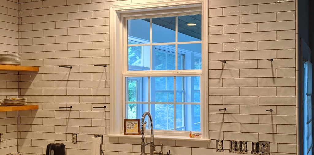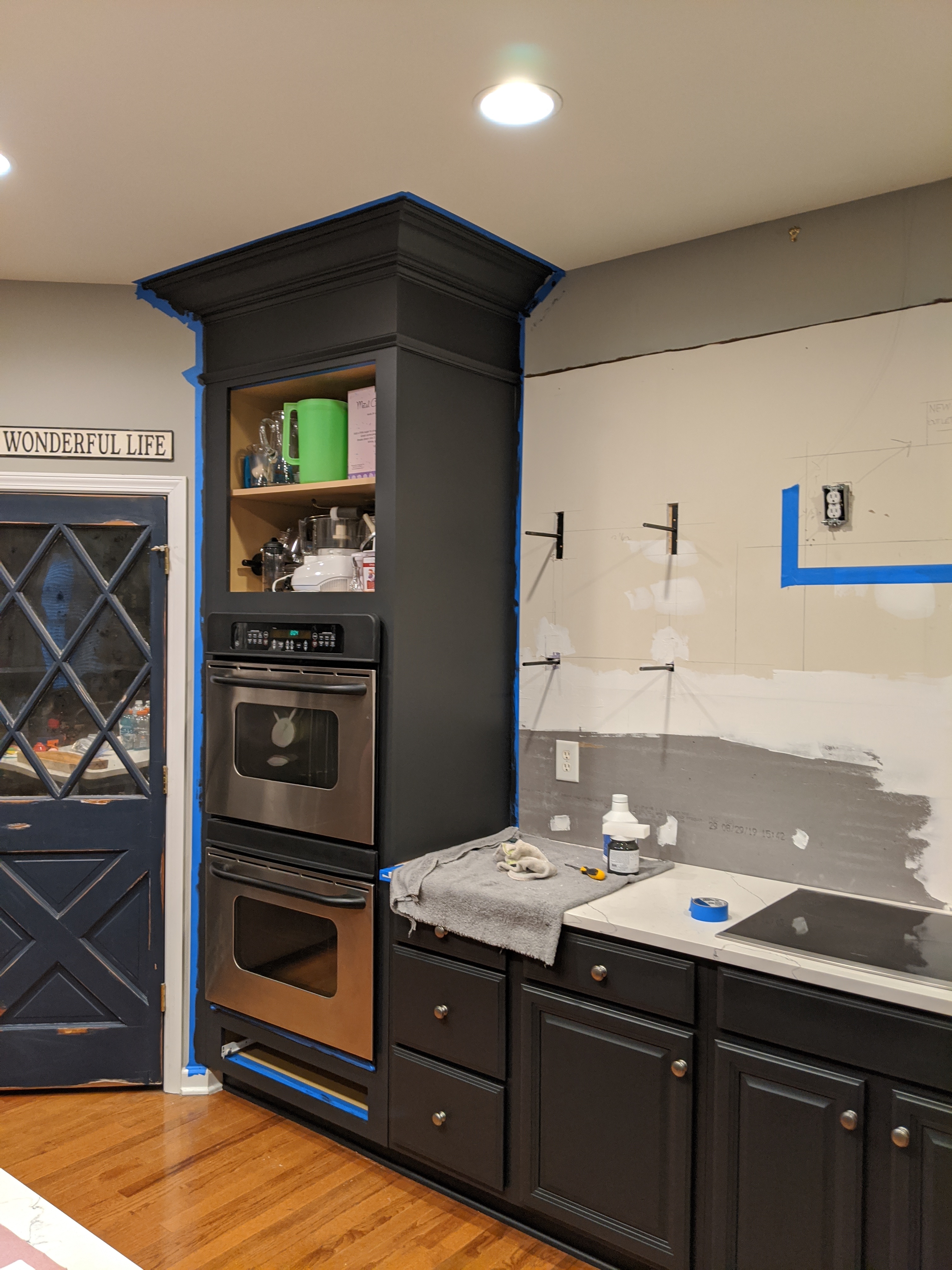 Doing everything ourselves, with the exception of the quartz countertops, was going very well. We could change things up as we went, we were learning a ton, and we could make everything just how we wanted it! Then, after completing the backsplash on the refrigerator wall we worried that doing the big wall- counter top to ceiling was a little over our heads- haha! So, we hired someone and I’ll just be nice and say it did NOT go well.