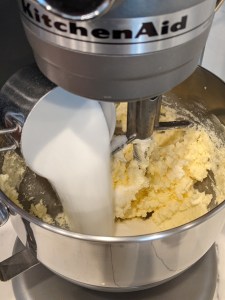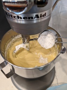 Step 6: Add the flour mixture to butter mixture 1 cup at a time. Mix at low speed just until blended.