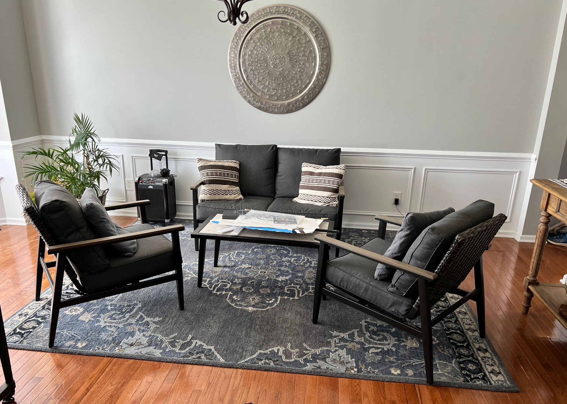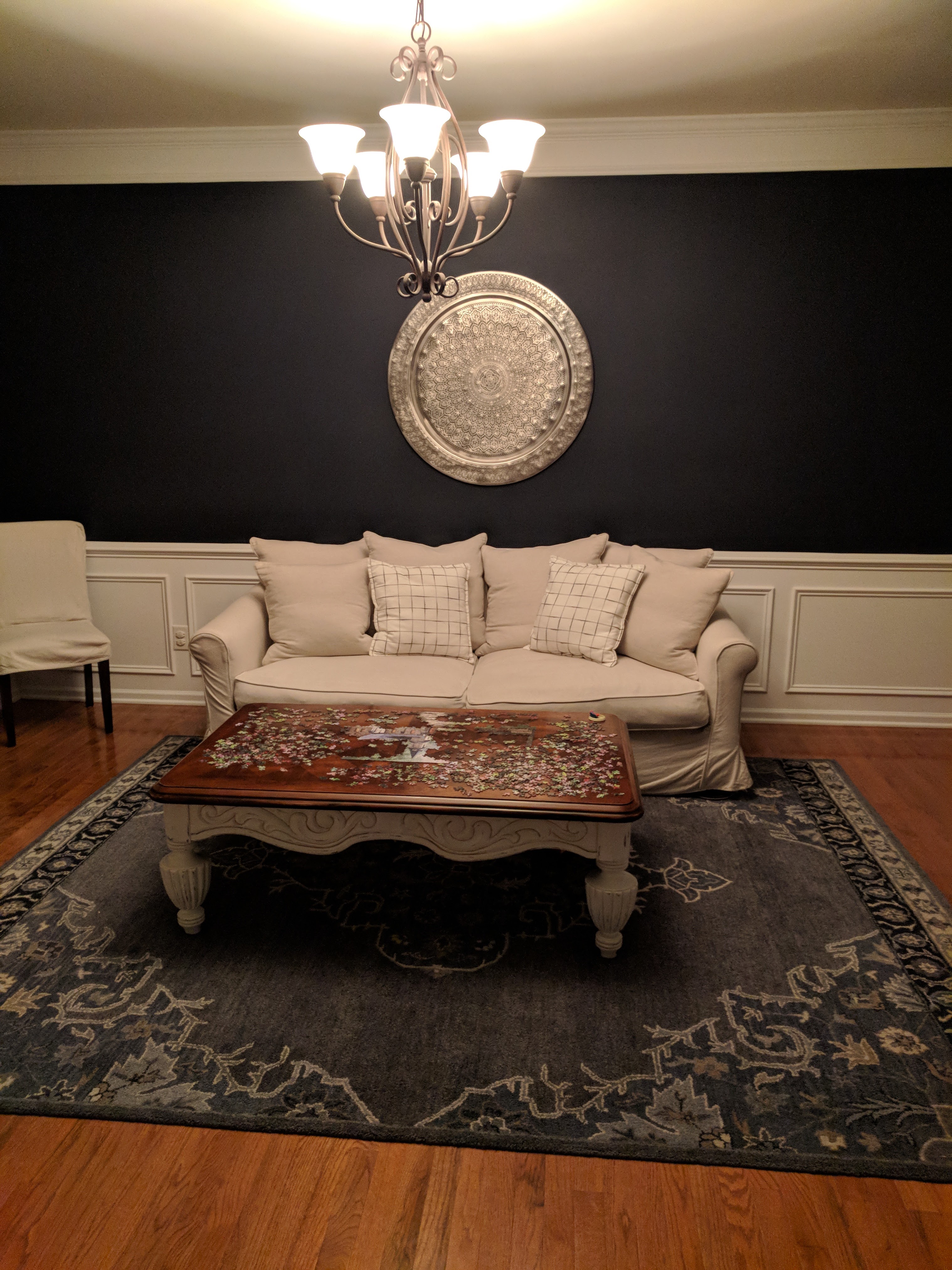 Safe, comfortable…these are words I like! So, when it came time to update a room in our home, I naturally leaned towards the safe design choice. I finally realized that mindset had not been working for this particular room. When our home was built, this space was obviously planned to serve as a dining room. To us, the only purpose it served was to collect dust! We also tried it as a play/puzzle/put- all-the-furniture-that-eventually-leaves-the-house-room. This green, then navy, then gray room (yes we painted it 3 times) needed a refresh and it needed to be BOLD!