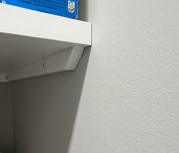 A few folks asked about how the shelves attach to the wall. The shelves do not directly attach to the wall. Instead, they sit on a ledge that wraps all the way around. A few pictures for those visual people like me 🙂
